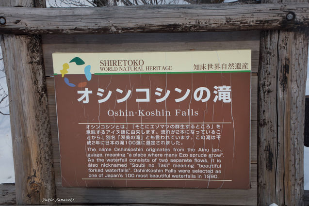 2日目は知床ウトロのホテルに泊まりました。途中、オシンコシンの滝に寄りま したが、滝が氷っているわけではないんですね。